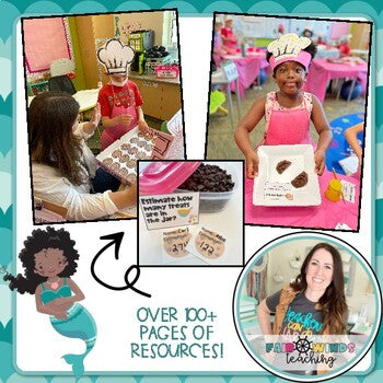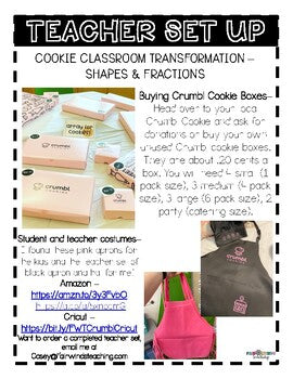 120+ slides on how to transform your classroom into an a Crumbl Cookie or other cookie factory adventure OVERNIGHT! Everything you need for a shapes and partitioning fractions (1/2, 1/3, 1/4) themed math day! Very detailed directions with pictures and links to purchase supplies are provided.