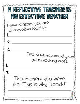 Use this form for yourself at the end of a quarter or unit to reflect on all of the amazing things you are doing and what you need improve on. I am also the mentor at my school and I place this form and a piece of candy or fruit in my new teacher’s mailboxes at the end of each quarter. This is a self reflection tool for their eyes only. It is very good practice to reflect on your teaching.