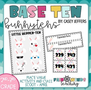 Little HopperTEN Base Ten Friends © (Place Value Activity & Class Scoot) April - Easter Bunny Place Value Activity - Give your students a number (Tens or Hundreds option) and have them cut and glue to create their own Easter Rabbit. Then have them use the classroom scoot paper to walk around the room and answer their classmates pictures. Don't have them glue on their numbers until after the scoot. I am only letting my students use the tens this time around to help with understanding 380 is the same is 38 tens!