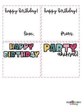 FWT Members Only! Party Pals - Student Birthday gift tags for Mini Stuffed Animals